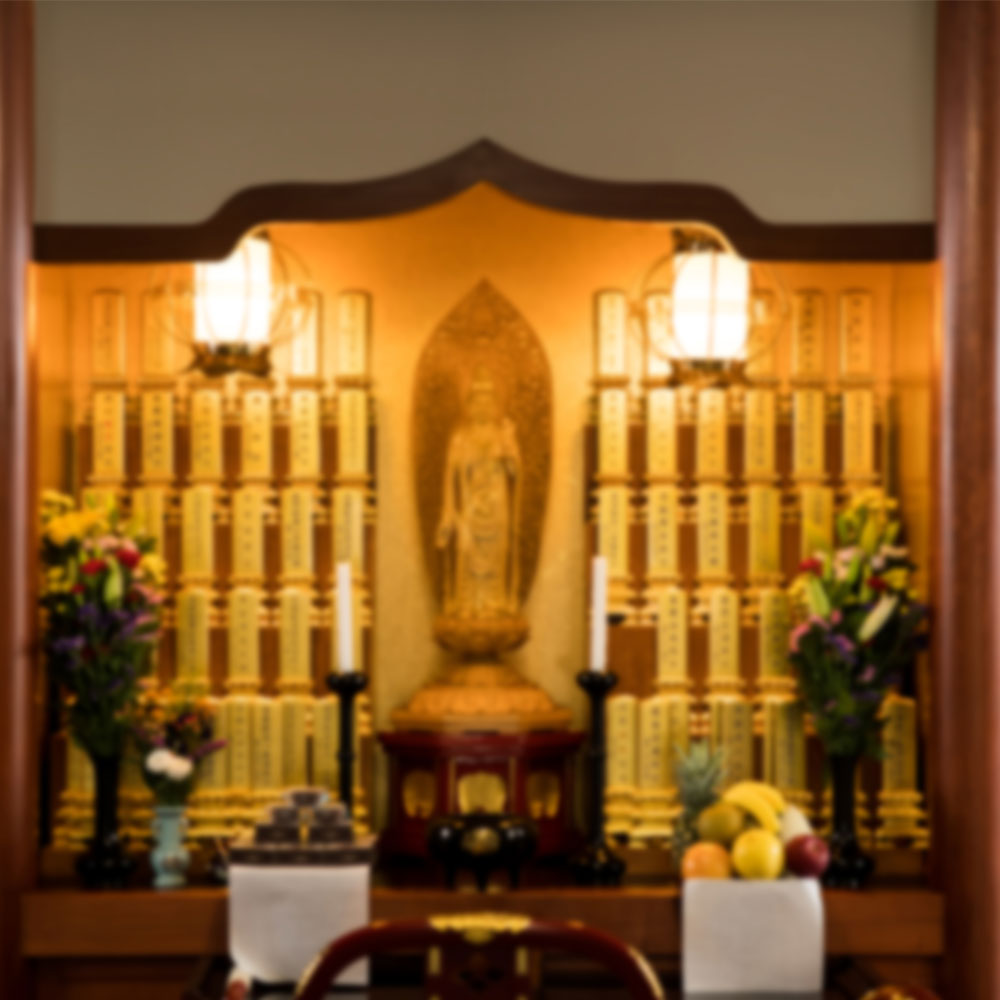 民間の施設では、位牌を安置するスペースの中央付近に仏様をご安置し、その左右に各人の位牌を立てる方式が多いようです。